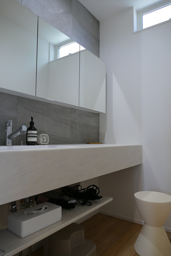 鏡の裏側も収納できるので、散らかりがちな洗面所もスッキリとした印象です。