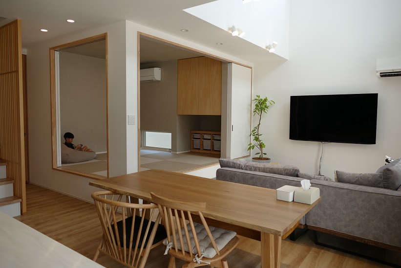 小上がり和室はお子さんのいる家庭には便利な空間。引き戸を設けているので来客用の宿泊スペースとしても活用できます。